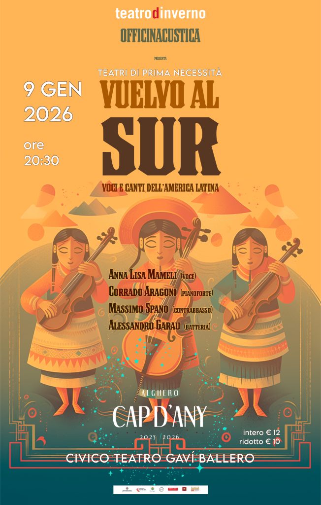 VUELVO AL SUR Concerto Voci dell'America Latina - arrangiamenti originali e direzione musicale Corrado Aragoni testi originali Anna Lisa Mameli con Anna Lisa Mameli (voce), Corrado Aragoni (piano), Remigio Pili […]
