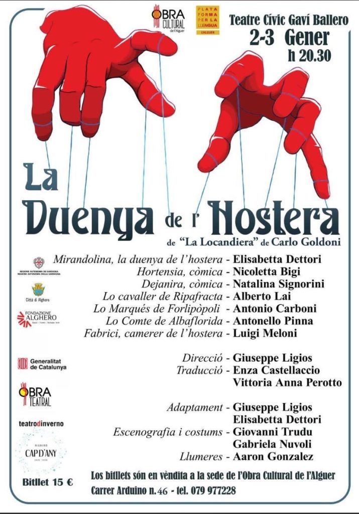 LA DUENYA DE L'HOSTERA Adattamento in algherese de “La Locandiera” di Carlo Goldoni Traduzioni di Enza Castellaccio e Vittoria Anna Perotto A cura dell’Obra cultural de l’Alguer Venerdì 2 e […]